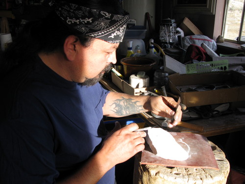 ナバホの伝統を生かしながらもどこかきっちりとした西洋のジュエリーのような風合いを醸し出す不思議な彼の作品。