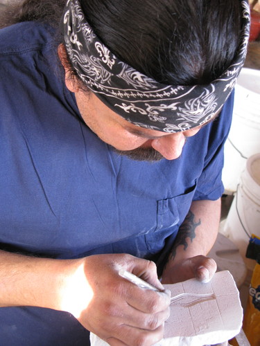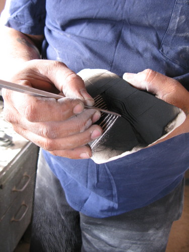 これは初めて見る技でびっくり。だからハリソンのできあがりトゥファストーンはいつも真っ黒なんですね。トーチの空気量を少なくして、煙だけをあてるのだそうです。