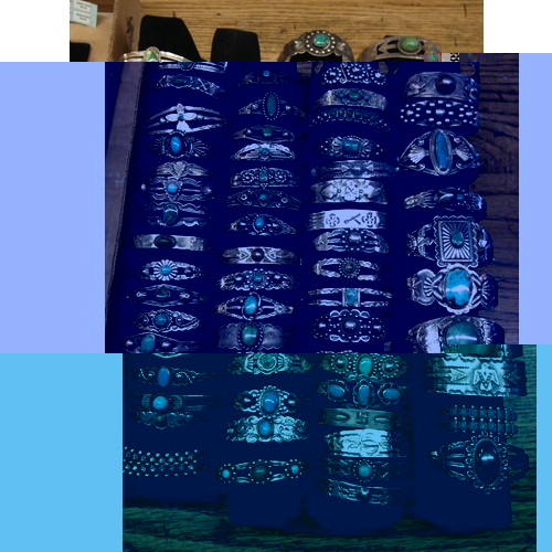 伝統的な4色、ジェット、ターコイズ、コーラル、シェルの組み合わせが渋い。
